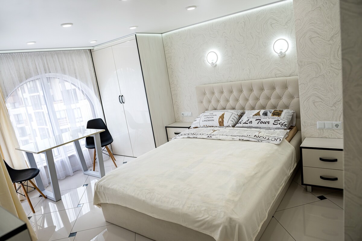 Elitní dům, autorská rekonstrukce (v roce 2022), Byt je dokonale čistý, Nachází se v blízkosti parku Topilce a k jezeru a centru 10 min chůze parkem. Nedaleko autobusového nádraží, centrální trh. K dispozici je PARKOVIŠTĚ, pozemek a příjezdová cesta pod dohledem videa. Velká manželská postel s ortopedickou matrací a pohovkou, která se rozkládá na manželskou postel, kvalitní spotřebiče a nádobí, individuální topení, teplá podlaha, Smart-TV, Internet100MB/s. K dispozici je kavárna "Owl" a sushi/pizza39 restaurace v domě.