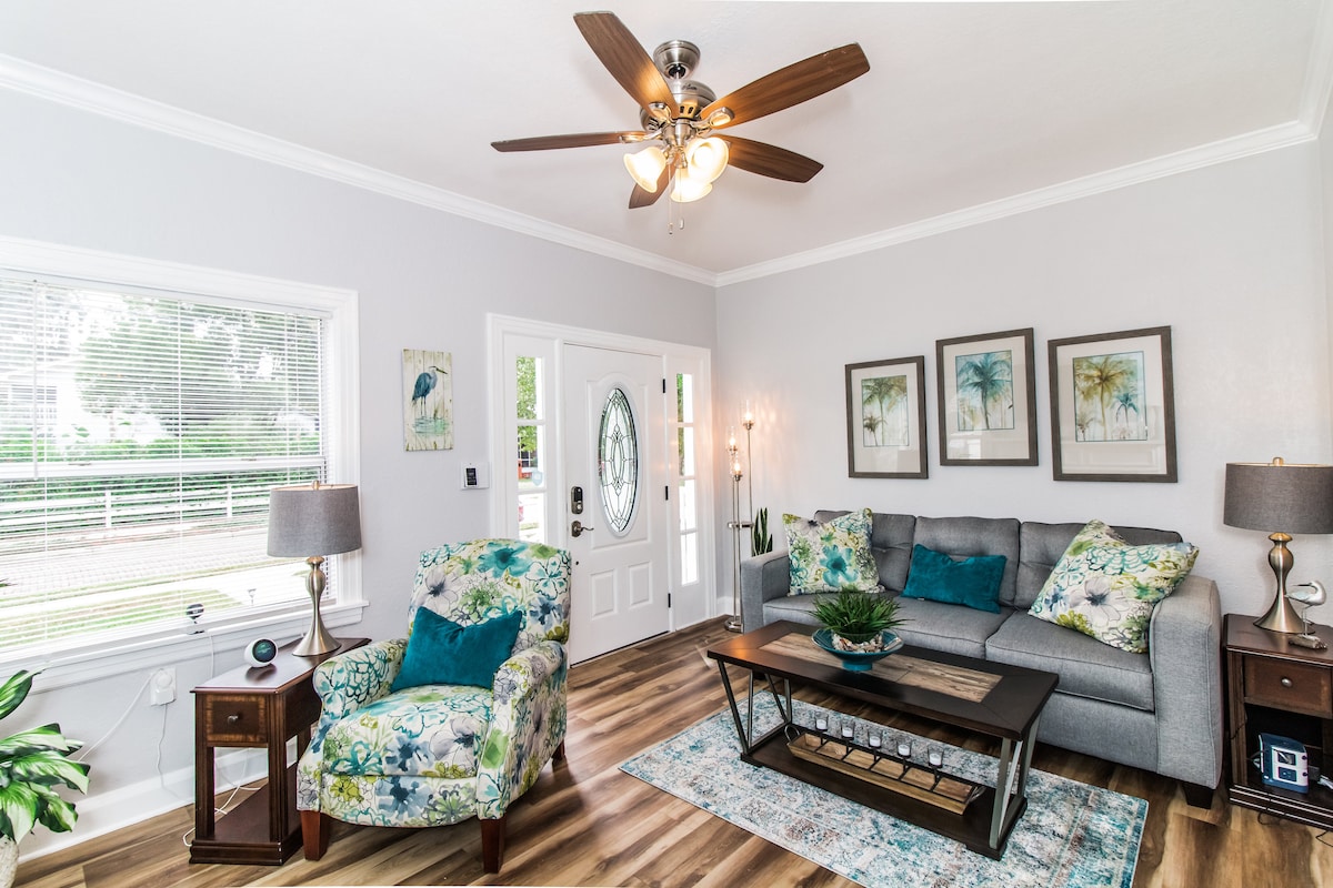 Vítej v mém malém chalupě ve městě. Dům byl postaven v roce 1926, ale byl kompletně přestavěn v moderním stylu, přičemž si zachoval kouzlo staršího domu. I když je to blízko všeho, co Tampa nabízí, stále má pocit té malé, klidné čtvrti poblíž řeky. Toto je můj domov. Miluji přední verandu, kde si můžu sednout se studeným nápojem a sledovat sousedy, jak se procházejí se svými psy. Park u řeky je velmi blízko, což je příjemná procházka z chaty.