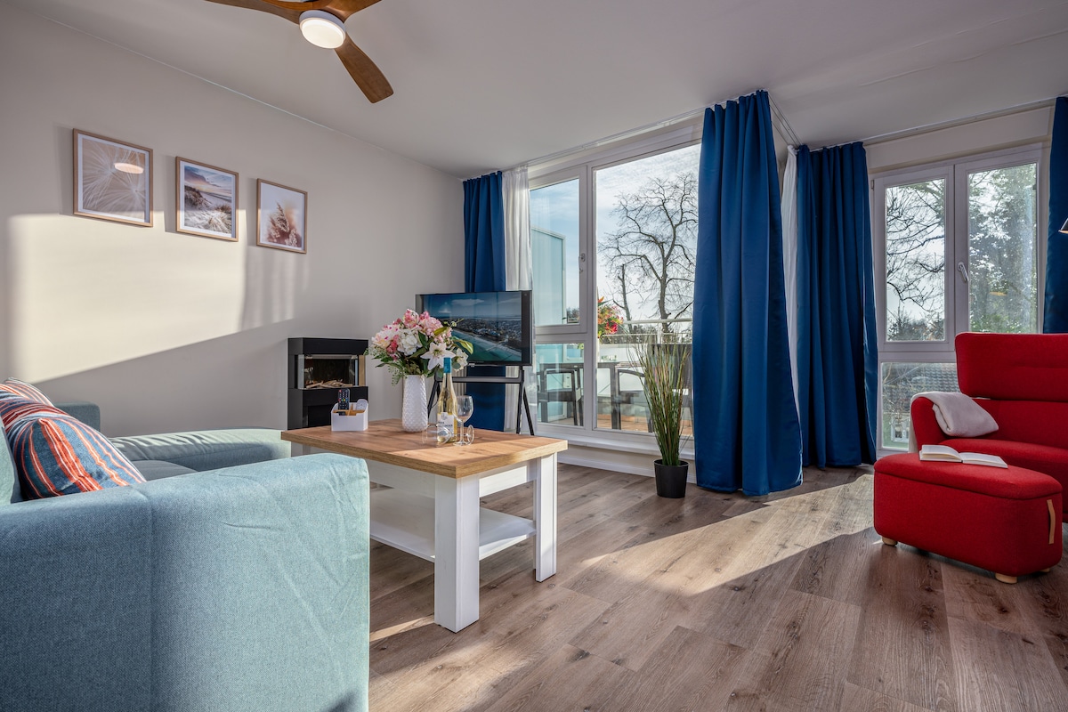 Náš apartmán (36 m²) je ideální pro útulnou dovolenou u Baltského moře, vhodný pro 2 osoby. Velký balkon s markýzou láká k pobytu venku. Na pozemku je k dispozici parkovací místo pro hosty. K dispozici jsou také možnosti pro uložení jízdních kol. Okna obývacího pokoje a ložnice jsou vybavena roletami a ochranou proti hmyzu. Domácí mazlíčci nejsou v apartmánu vítáni. V hlavní sezóně pronajímáme zpravidla pouze na týden.