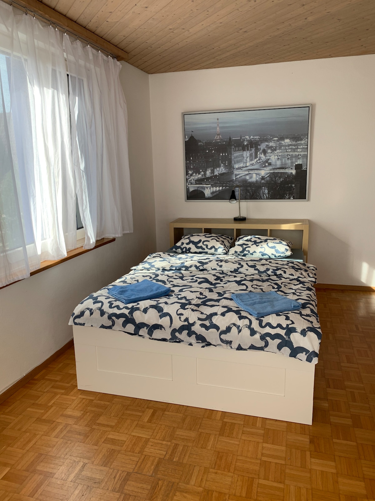 Beautiful, spacious 2 bedroom/2 full bathroom apartment in Zollikon near lake, 3 mins by bus to Zurich (10 mins to center/Bellevue). Well decorated, family friendly. Maximum 5 guests - daybed in second bedroom can be converted to one large bed. Ideal for a couple or family with children. Baby cot can be provided. Outdoor area with bbq and dining for 10. Check in times are usually flexible so please message if other times are required.