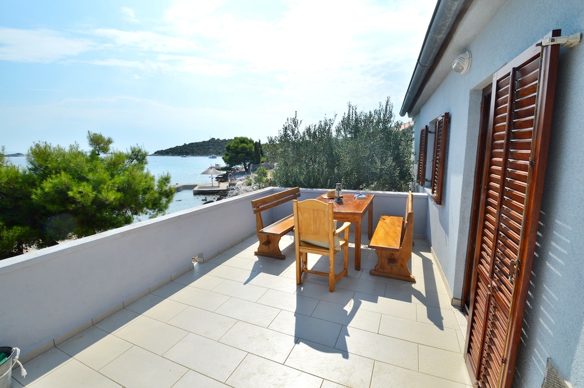 Rybářský dům terasa a výhled na moře - ostrov Žut
